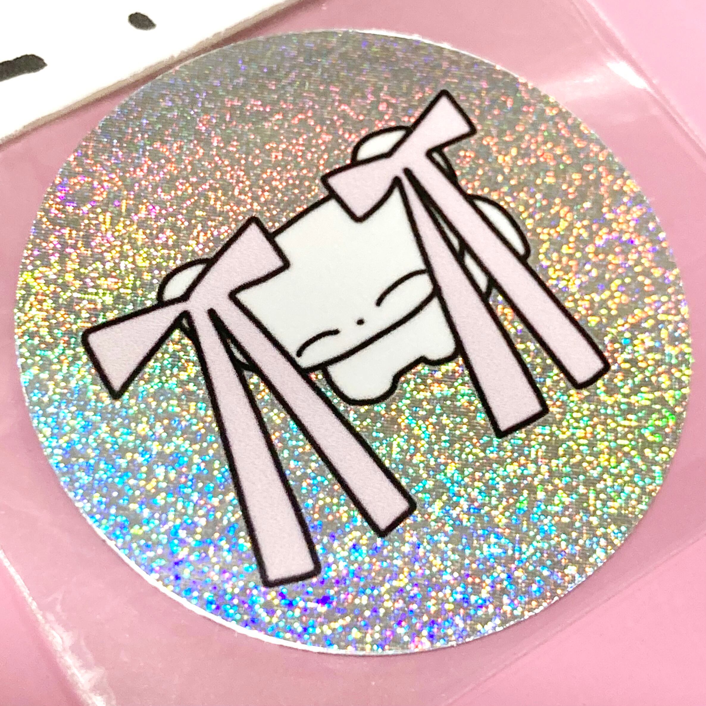 ちょぴのステッカー。 絵柄は透明で型抜きの「ちきゅう」とホログラムで丸型の「おしゃれ」の2種類。 サイズ: ちきゅう 4.5×4.5cm おしゃれ φ4cm