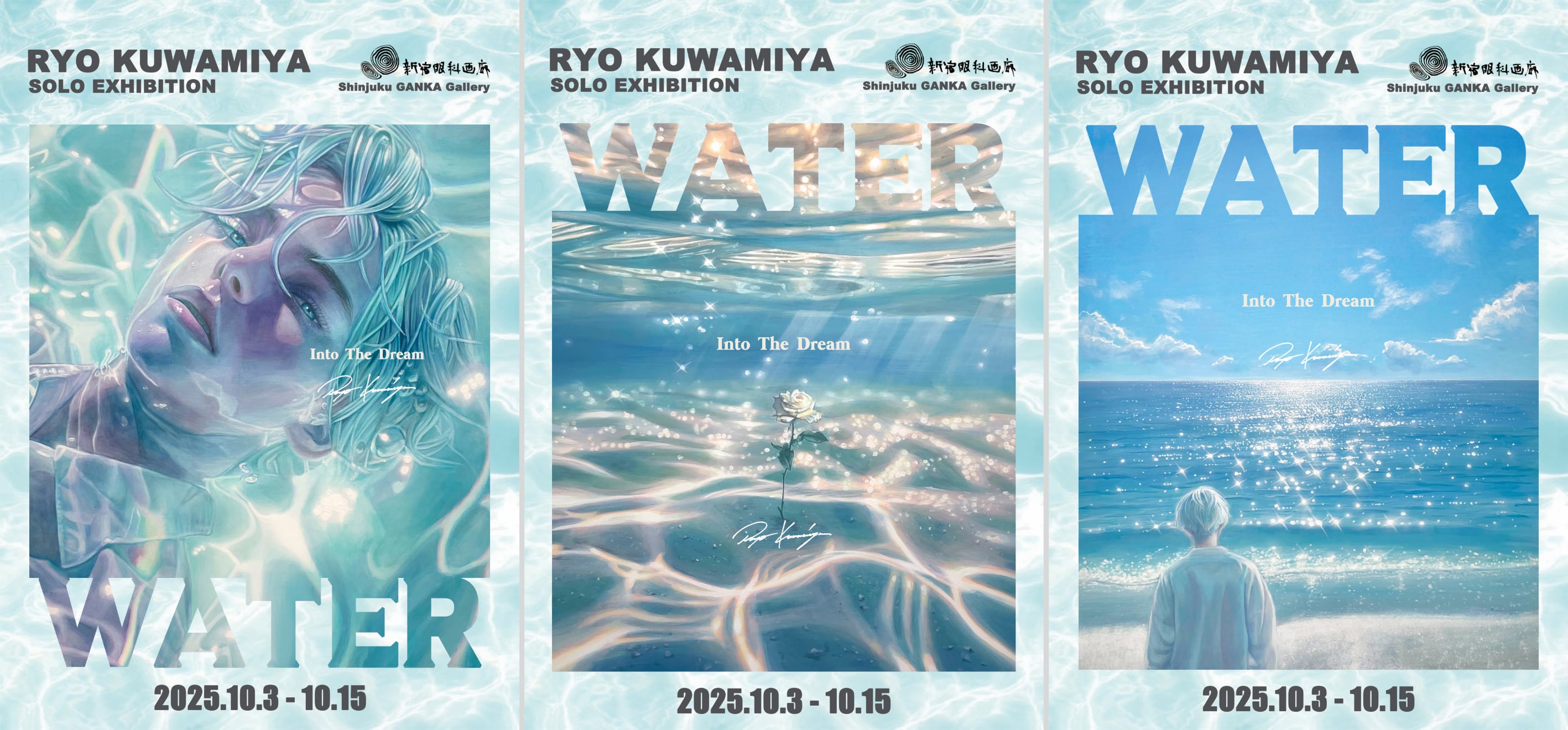 新宿眼科画廊にて開催中の桑宮亮個展「WATER」のA3サイズポスターです。